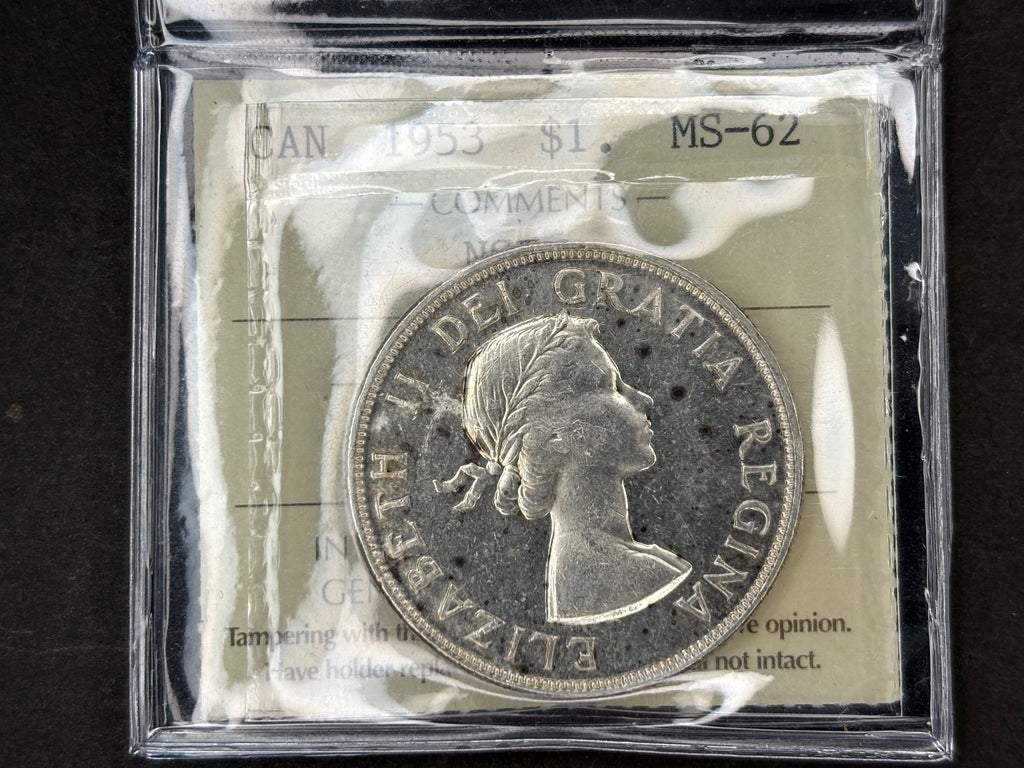 Canadian Silver Coin - Dollar - 1953 NSF - ICCS MS62